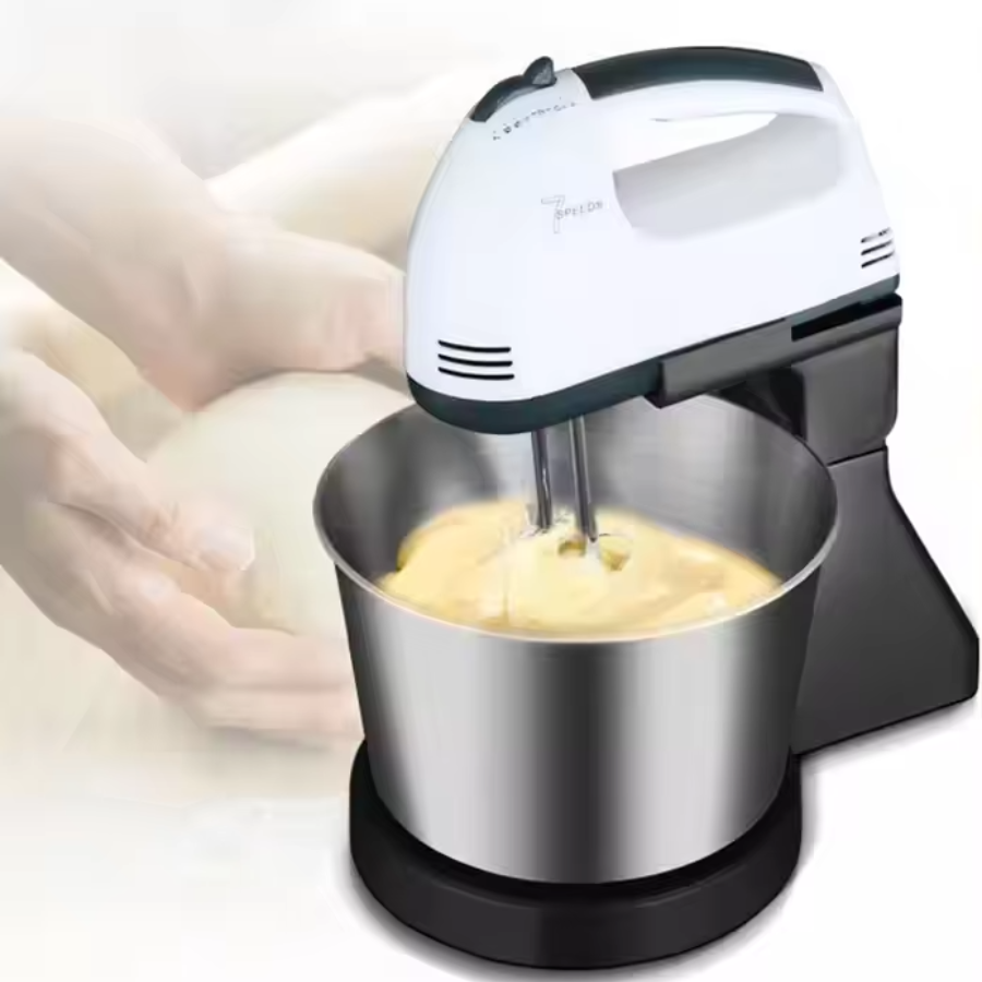 In comparatie cu mixerul obisnuit, de mana, acesta are o baza stabila si un bol cu o capacitate de 2 litri.