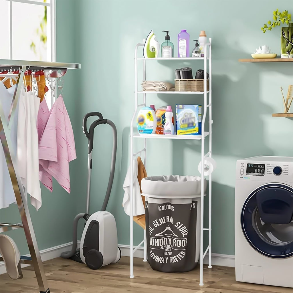 Suport depozitare cu rafturi pentru masina de spalat sau toaleta, soluția perfectă pentru a crea mai multe spații suplimentare de depozitare.Raftul de depozitare cu 3 polițe de amplasat deasupra mașinii de spălat rufe va fi cu siguranță soluția perfectă pentru a crea mai multe spații suplimentare de depozitare în baia supraaglomerată sau în spălătorie.Caracteristici:Cadru din metalCalitate superioarăDurabil și stabil