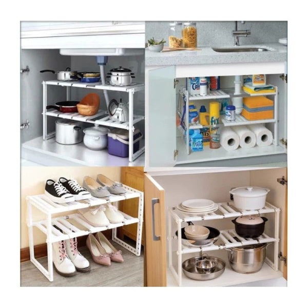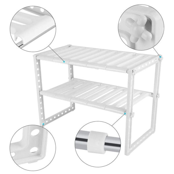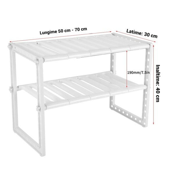 Organizeaza eficient spatiul de sub chiuveta cu raftul organizator extensibil cu 2 etaje. Conceput pentru flexibilitate si rezistenta, acest suport ajustabil iti dubleaza spatiul de depozitare si se adapteaza perfect in jurul tevilor existente.