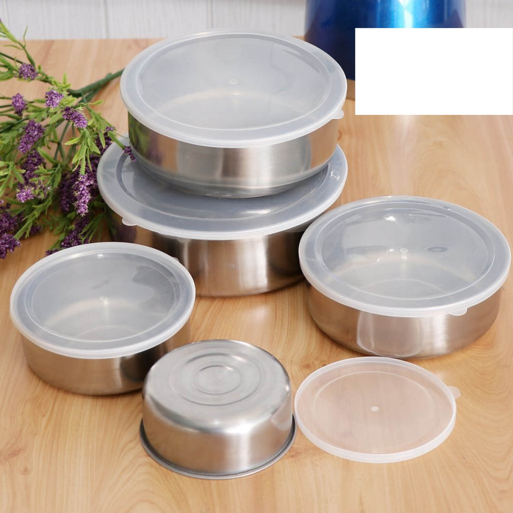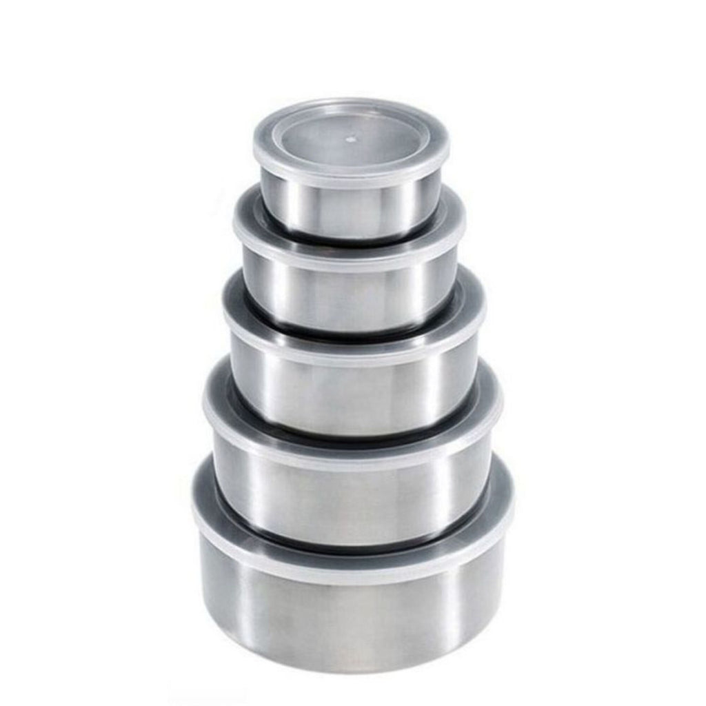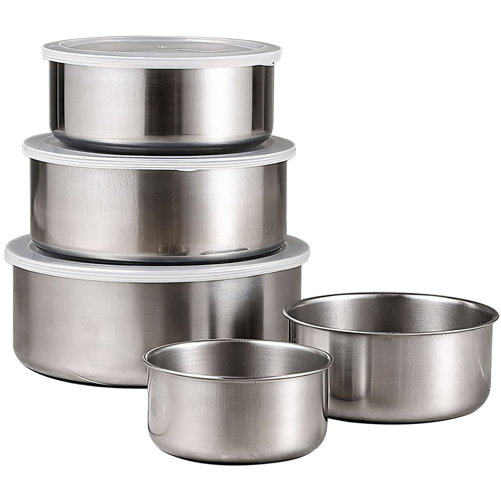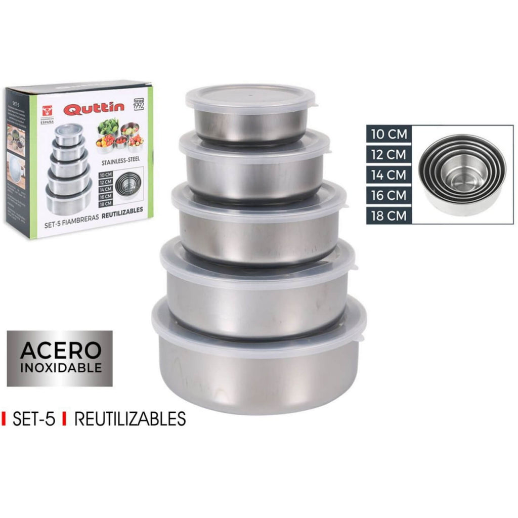 Setul de 5 caserole metalice este solutia practica pentru pastrarea alimentelor proaspete si gustoase. Cu dimensiuni diferite si capace transparente, aceste recipiente sunt ideale pentru depozitarea mancarii gatite, fructelor, legumelor sau gustarilor zilnice.