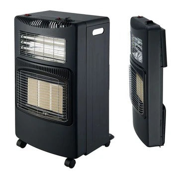 Aprindere PIEZO automată, printr-un singur buton — generează scânteie fără alimentare electrică. Panoul frontal are 3 plăci ceramice cu infraroșu; acestea radiază căldura direct în încăpere, oferind încălzire rapidă și eficientă, inclusiv pentru spații mai mari.