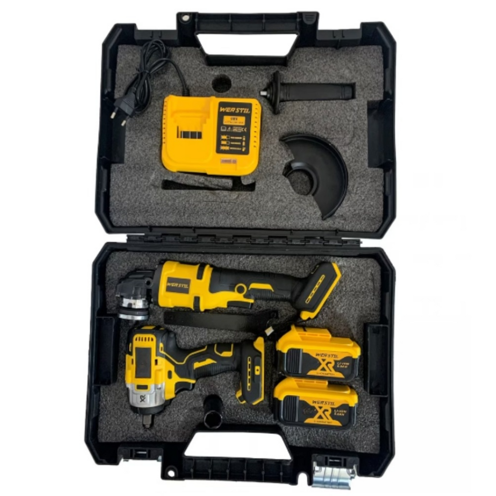 Trusa Werstil este alegerea ideala pentru bricolaj si uz profesional, incluzand un pistol de impact brushless de 320 Nm si un polizor unghiular de 125 mm. Alimentate de 2 acumulatori Li-Ion de 48V 5AH, aceste scule ofera putere ridicata, autonomie extinsa si flexibilitate maxima in orice proiect.